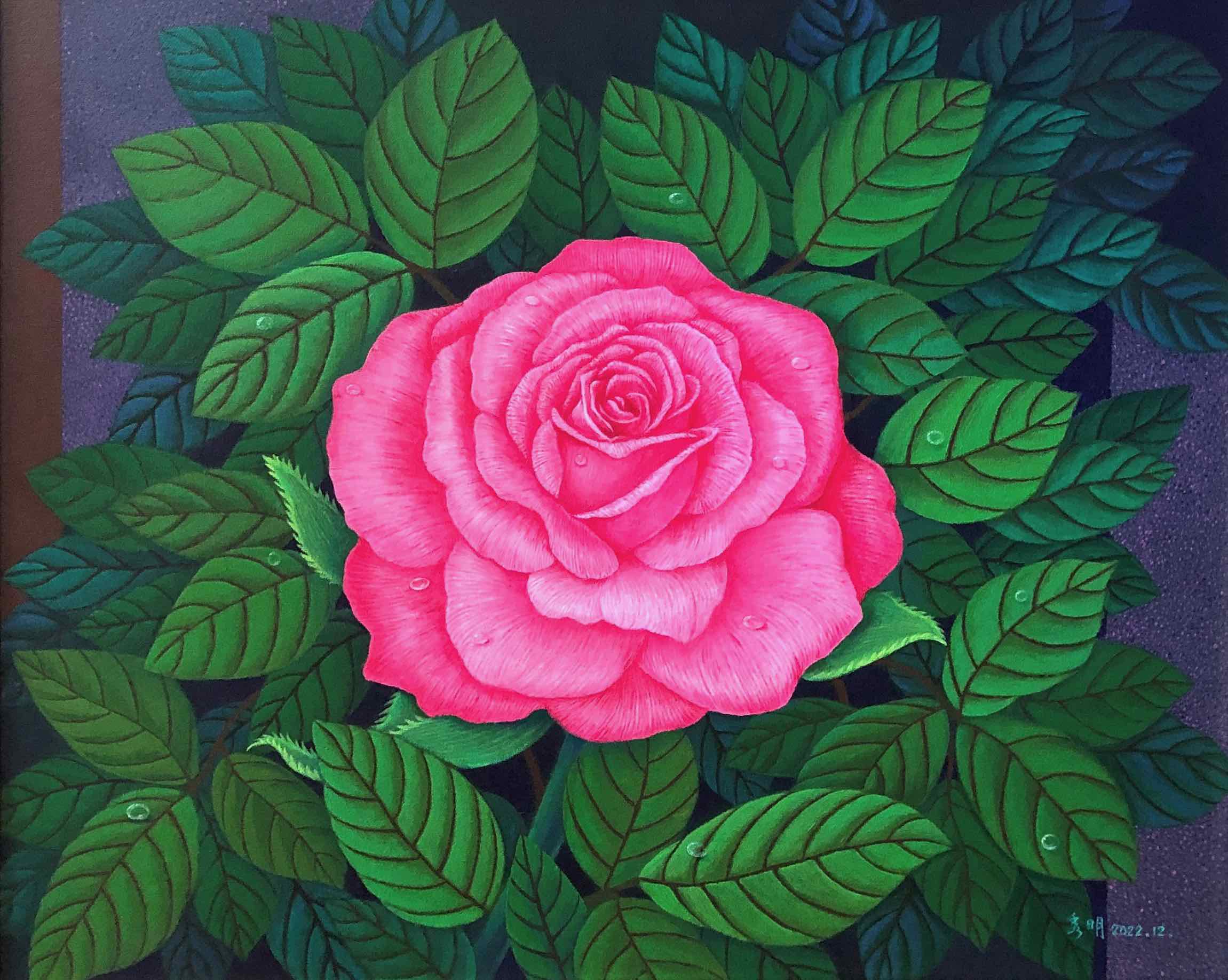 歐秀明 《桃紅沙崙玫瑰》 壓克力 53x65cm 2022